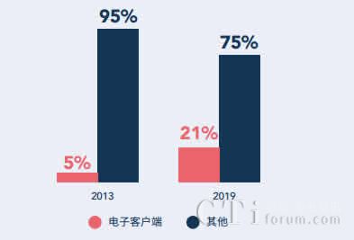 電子客戶端的收入從 2013 年的 1.21 億美元增長到2019 年 的 11 億美元。