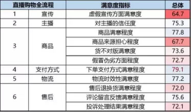 《直播電商購物全流程滿意度》 來源:中消協(xié)報告