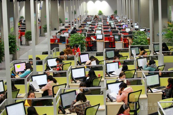 在美國(guó),呼叫中心產(chǎn)業(yè)的科技含量很高,與大數(shù)據(jù)結(jié)合更加緊密,總體上屬于現(xiàn)代服務(wù)業(yè)范疇。在3億美國(guó)人中,從事呼叫中心產(chǎn)業(yè)的就有700萬(wàn)人。而中國(guó)有13億人口,目前從事呼叫中心產(chǎn)業(yè)的卻只有300萬(wàn)人。作為貴陽(yáng)大數(shù)據(jù)產(chǎn)業(yè)的重要載體,貴陽(yáng)市呼叫中心及服務(wù)外包產(chǎn)業(yè)示范基地于今年1月正式啟動(dòng)。目前貴陽(yáng)的呼叫中心產(chǎn)業(yè)已有近3萬(wàn)坐席,解決2萬(wàn)人就業(yè)。圖為貴陽(yáng)呼叫中心與服務(wù)外包產(chǎn)業(yè)示范基地。