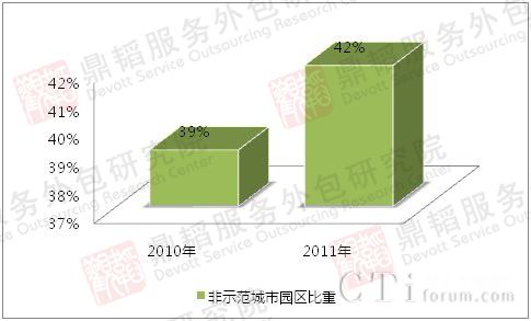 圖二 非示范城市外包園區(qū)數(shù)量比重