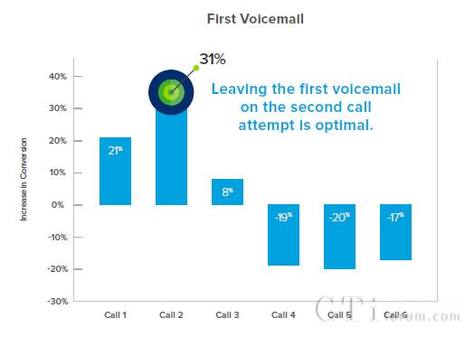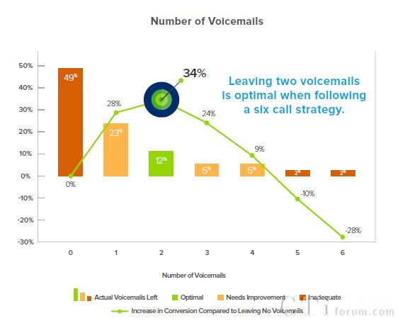 給每個(gè)不響應(yīng)的潛在消費(fèi)者打6次電話對(duì)有些銷售團(tuán)隊(duì)來(lái)說(shuō)太多了,但是,又是買家只注意哪些在語(yǔ)音信箱留言的未接電話。調(diào)查顯示6次未接聽(tīng)后在語(yǔ)音信箱留2次言是最佳的。