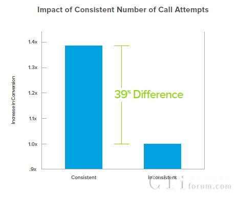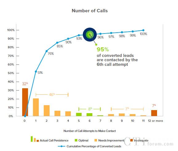 如果買家很忙,他可能不能立即接電話,即使賣家馬上給買家打電話。但是,銷售團(tuán)隊(duì)在放棄之前試著聯(lián)系消費(fèi)者。調(diào)查顯示95%的轉(zhuǎn)化是在第六次電話聯(lián)系之后。