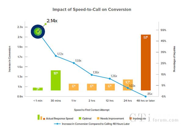 買家剛剛在網(wǎng)站上填寫了一份購(gòu)買表單,這意味著他可能不是很忙。接下來(lái)的幾分鐘給買家感興趣的商品或服務(wù)提供了時(shí)間窗口,而起買家可能有時(shí)間接電話。不幸的是,賣家可能需要48小時(shí)才能回復(fù)。