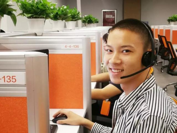 來阿里之前,滕思穆在其他地方當客服,所以雖然年齡最小,但目前服務數(shù)量和滿意度都保持在小組TOP1.他說自己從小就喜歡跟人聊天說話,當客服從不覺得枯燥反而感覺很好玩。見到滕思穆時,他穿一件干凈的白色襯衣,臉上少了些同齡人的青澀,那笑容清朗極富感染力,怪不得阿里要破格錄取如斯少年。