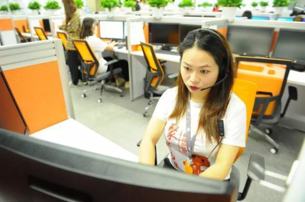 從今年4月南昌客戶體驗中心項目簽約至今,一批批年輕客服經(jīng)由滕文韻們調(diào)教,正式上崗。每個橙色工位上,擺放著兩臺電腦顯示器,一臺用來和客戶聊天、整理客戶需求,另一臺用來查詢問題訂單,每人每天接待200多名客戶,這是標配。