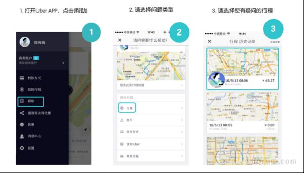 在優(yōu)步應(yīng)用程序的幫助界面內(nèi),用戶可以針對(duì)‘行程’選擇自己需要解決的問題,根據(jù)提示進(jìn)行操作,最后提交到優(yōu)步客服中心。與之前通過郵件獲得反饋不同,現(xiàn)在,優(yōu)步用戶可以在應(yīng)用程序內(nèi)直接收到客服對(duì)問題的解答,回復(fù)以‘對(duì)話’的形式呈現(xiàn),客服回復(fù)后,系統(tǒng)將會(huì)推送通知給用戶。如果對(duì)客服的回應(yīng)不滿意或者問題沒能得到解決,用戶可以在回復(fù)欄中繼續(xù)追問,直到問題解決。