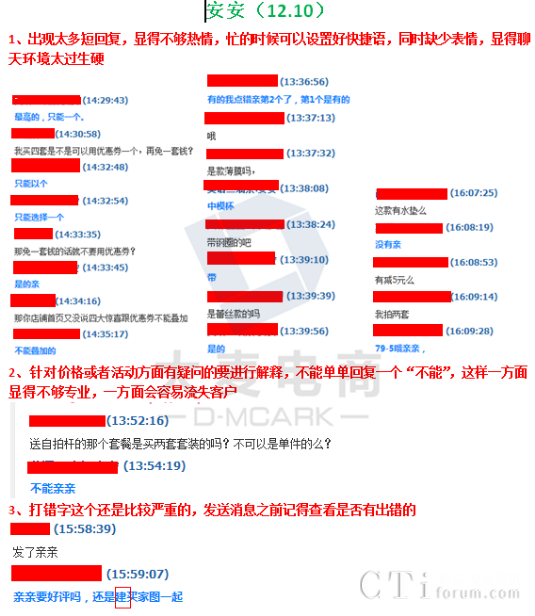2、抽查聊天記錄:找出好的聊天記錄,做成成功案例,宣傳正能量;壞的聊天記錄做成反面教材,找到相應(yīng)的客服,然后進(jìn)行客服內(nèi)部宣導(dǎo)與培訓(xùn)。
