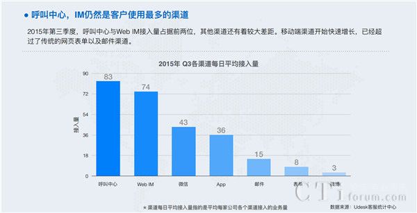 一、在客戶服務(wù)渠道方面,高績(jī)效的企業(yè)客服團(tuán)隊(duì)仍以呼叫中心和IM為主,并在加緊布局微信、APP等新渠道。