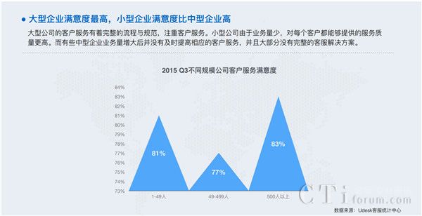 二、做為重要的客戶服務(wù)渠道,呼叫中心和Web IM由于資深的即時(shí)性特點(diǎn),客戶滿意度相對(duì)較高,而新興的移動(dòng)互聯(lián)網(wǎng)和醫(yī)療行業(yè)及中小型企業(yè)的客戶滿意度相對(duì)較低。