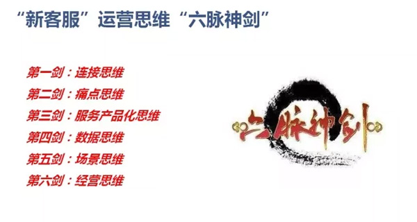 我們作為客服的運營者,我們也要轉(zhuǎn)變思維,這里列了我們在新的運營思維領(lǐng)域需要新的思路,概括為六脈神劍: