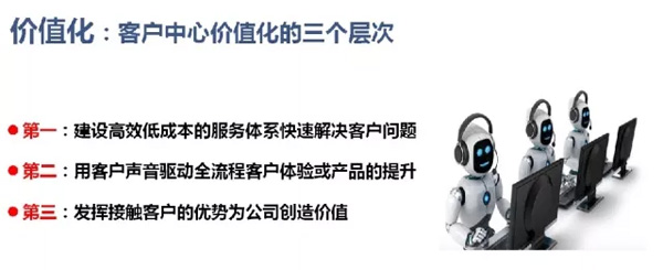 價值化,客服中心經(jīng)過那么多年的發(fā)展變遷,過去是簡單的售后中心,現(xiàn)在是呼叫中心、客戶聯(lián)絡(luò)中心、多渠道處理中心等等,其實客服中心的定位和功能也發(fā)生了翻天覆地的變化,這也是為我們客服中心的價值化創(chuàng)造了很多很好很有利的條件。
