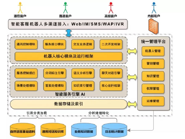 客服機(jī)器人最初大都部署在在線端,也就是WEBCHAT,可以理解為傳統(tǒng)互聯(lián)網(wǎng)模式的應(yīng)用場景,因?yàn)槟菚r電商的Pageview也大多來自于PC端,但是移動互聯(lián)網(wǎng)的增量非常猛烈,很快就超過了PC端,這個時候的部署就快速地切換到了移動端,實(shí)現(xiàn)的方式就是通過IM、微信和APP等,這其中微信的增速是最快的,這給服務(wù)提供者的設(shè)計帶來了比較大的挑戰(zhàn),因?yàn)閺目蛻艏?xì)分的角度,其實(shí)這些客戶既有重疊又有所區(qū)隔,客戶體驗(yàn)控制點(diǎn)與人工服務(wù)有所差異,此外還有節(jié)點(diǎn)打通的問題(即來自于不同入口的客戶服務(wù)信息都可見并可操作),而這對于很多傳統(tǒng)型的客服中心可能都是先天不具備的。所以從個人經(jīng)驗(yàn)上來說,進(jìn)行客服機(jī)器人的部署必須先考慮目的和基礎(chǔ),先從可行性比較高的實(shí)施方案入手,比如需要分析如果目前在線服務(wù)的流量都不是很高,那么哪一種入口可引導(dǎo)的可能性比較大,大部分的傳統(tǒng)行業(yè)會先從微信入手,因?yàn)槎加衅髽I(yè)公眾號,但是微信號是統(tǒng)一運(yùn)營還是分別運(yùn)營(既有營銷號又有服務(wù)號)一般是企業(yè)戰(zhàn)略部門的事情,服務(wù)部門無法掌控,所以至少是服務(wù)部分的運(yùn)營權(quán)可以掌握在客服部門的手里,否則在系統(tǒng)上線后要做調(diào)整就會相當(dāng)困難。另外可以考慮的一個入口是在電商平臺上(特別是制造業(yè)的客服),因?yàn)楝F(xiàn)在很多傳統(tǒng)行業(yè)的電商平臺銷售占比都越來越高,客戶的咨詢售后會直接產(chǎn)生,很容易引導(dǎo),而銀行業(yè)、電信行業(yè)和航空業(yè)在APP上的流量會非常高,那么APP上的智能服務(wù)設(shè)計就會成為一個必要選擇。