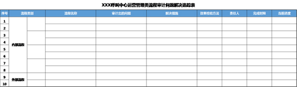 ?、?span > 《XXX呼叫中心流程審計問題解決追蹤表-運營管理類流程》