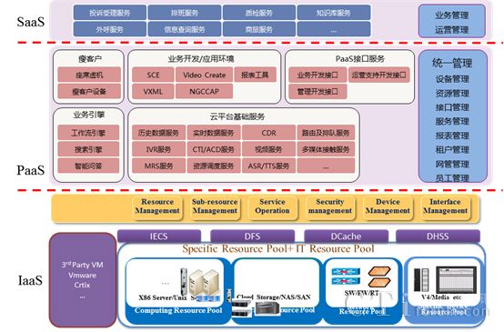 - 真正實現(xiàn)了呼叫中心平臺部署在云資源池上,上圖中各個平臺模塊設(shè)備不再是一個個獨立的硬件設(shè)備,取而代之的是云資源池劃分給各個模塊的一份或多份設(shè)備資源。