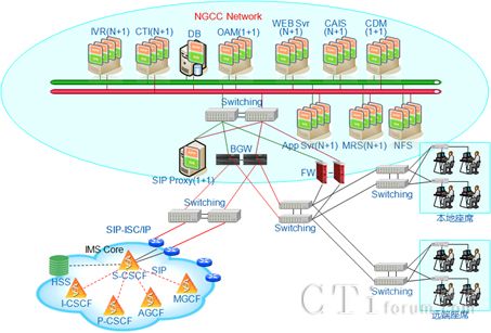 大連電信離岸外包呼叫中心的系統(tǒng)組網(wǎng)如下圖所示: