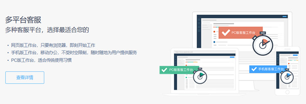 多平臺服務(wù):網(wǎng)頁版工作臺,只要有瀏覽器,即刻開始工作;手機版工作臺,移動辦公,不受時空限制,隨時隨地為用戶提供服務(wù);PC版工作臺,適合傳統(tǒng)使用習(xí)慣;