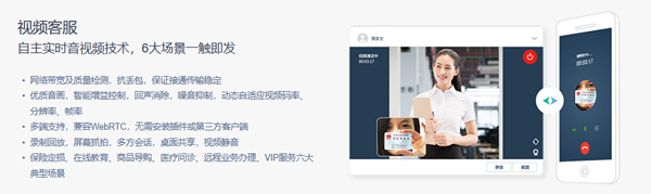視頻客服:網(wǎng)絡(luò)帶寬及質(zhì)量檢測,抗丟包,保證接通傳輸穩(wěn)定;優(yōu)質(zhì)音畫,智能增益控制,回聲消除,噪音抑制,動態(tài)自適應(yīng)視頻碼率/分辨率幀率;多端支持,兼容webRTC,無需安裝插件或第三方客戶端;錄制回放,屏幕抓拍,多方會話,桌面共享,視頻靜音;保險定損/在線教育/商品導(dǎo)購/醫(yī)療問診/遠程業(yè)務(wù)辦理/VIP服務(wù)等六大典型場景