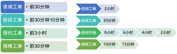在工單流程上,嚴格控制創(chuàng)單、處理、閉單、回訪等各業(yè)務節(jié)點的處理權責、流轉規(guī)則、處理時限、提醒時限、事件升級制度等,對工作流程實現(xiàn)全面跟蹤數(shù)字化管理。