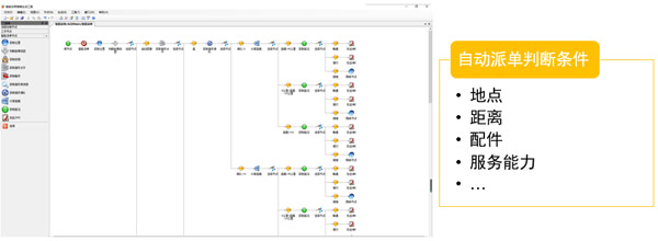在派單上,應用智能化派單技術(通過地理位置、距離、路況、配件庫存、服務能力分配最匹配服務站),自動方式+人工干預+GIS輔助+糾錯+排除意外相結合的方式,提高派單的準確率,在最大程度上降低工單駁回的幾率。
