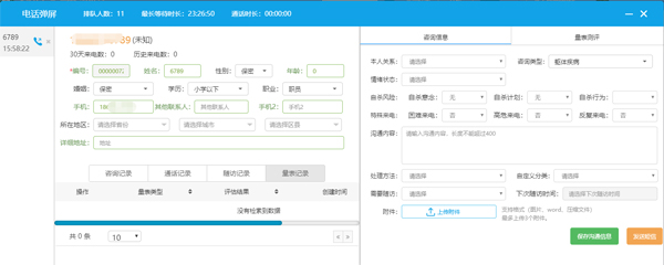 通過電話彈屏,咨詢員可以及時(shí)獲取求助者的信息,包括求助者的來(lái)電次數(shù)、以往咨詢記錄、通話記錄、隨訪記錄及心理評(píng)估結(jié)果等,保持熱線咨詢的相對(duì)連續(xù)性,避免每次來(lái)電處理的重復(fù)性或不一致性。