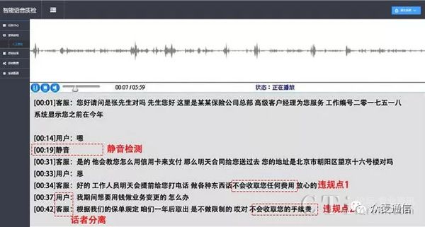 眾麥通信智能語音質(zhì)檢系統(tǒng)平臺(tái)能承受超大并發(fā)壓力,實(shí)現(xiàn)100%的系統(tǒng)自動(dòng)質(zhì)檢,節(jié)省大量的人工質(zhì)檢成本。質(zhì)檢員再對(duì)篩檢出的違規(guī)件進(jìn)行精聽的新型質(zhì)檢模式,讓企業(yè)精準(zhǔn)把控每一位坐席人員的服務(wù)質(zhì)量。與此同時(shí),質(zhì)檢系統(tǒng)對(duì)外提供接口,無縫集成到企業(yè)的信息系統(tǒng)中,實(shí)現(xiàn)便捷化、高效化地管理,受到客戶認(rèn)可。