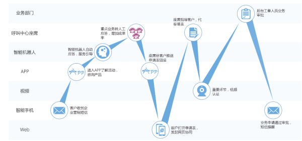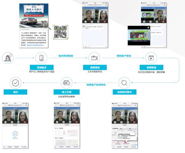 該平臺支持客戶從Web、APP、小程序、H5鏈接、直播等多種渠道觸點上與企業(yè)客服中心座席人員建立視頻通話,同時在線文本聯(lián)絡(luò)并行,并通過將媒體能力與數(shù)據(jù)平臺、企業(yè)業(yè)務(wù)系統(tǒng)進(jìn)行深度集成,為客戶提供在線表單推送和填寫、在線核身認(rèn)證、數(shù)字化簽名、座席協(xié)同代客操作等完備的線上業(yè)務(wù)辦理能力。同時支持客戶在Web、APP等渠道間進(jìn)行視頻聯(lián)絡(luò)的無縫切換,無需重復(fù)排隊、重述問題,就能與座席連貫保持視頻溝通。