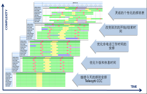 這個道理很明顯,排班師也希望能這樣做,但手工環(huán)境下超量的計(jì)算阻滯了小粒度的實(shí)現(xiàn)。而WFM工具利用了計(jì)算機(jī)的強(qiáng)大計(jì)算能力,使這一想法得以付諸實(shí)現(xiàn)。