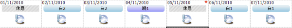 ?。ɡ龍D:標(biāo)紅心的05/11/2010,該員工要求必須休息,為必須滿足偏好,其他日期偏好非必須滿足。)