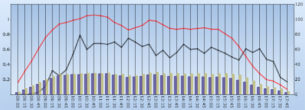 近期預(yù)測的目的是得到時段間隔內(nèi)(如15分鐘)的詳細(xì)話務(wù)量分布。在長期預(yù)測得到每天話務(wù)量、AHT的基礎(chǔ)上,需要細(xì)分到各時段。只有得到時段內(nèi)的話務(wù)量、AHT分布,才能據(jù)此計(jì)算各時段的人員需求,達(dá)到精細(xì)化排班的要求。