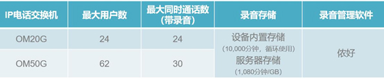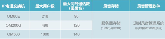 - 高并發(fā)錄音:單臺(tái)OM系列IP電話交換機(jī)(IP-PBX)支持大于100路的電話錄音,支持多臺(tái)設(shè)備堆疊,最大支持300路實(shí)時(shí)電話錄音。