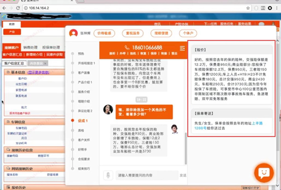基于這樣的背景,科天云在平安科技的呼叫中心頁面,嵌入金牌話術(shù)提醒功能,以輔助坐席進(jìn)行相關(guān)話術(shù)內(nèi)容提示。比如,系統(tǒng)顯示客戶需要續(xù)保,天客云的AI金牌話術(shù)助手會自動推薦續(xù)保方案,隨著與客戶溝通的過程,根據(jù)客戶的關(guān)鍵信息,給出相應(yīng)的話術(shù)方案,比如報價、優(yōu)惠折扣信息等。