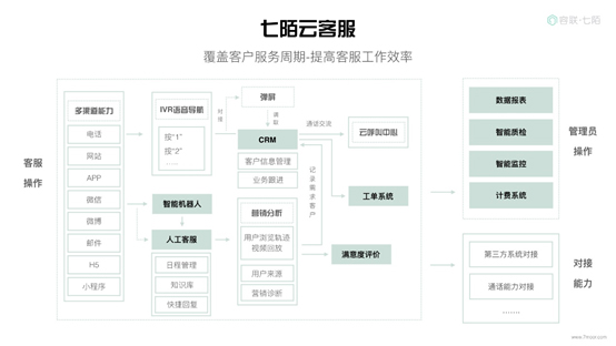 容聯(lián)七陌-企業(yè)客戶服務整體解決方案提供商,也是國內(nèi)首家自主研發(fā)推出全渠道整合的SaaS云客服軟件提供商,專注于企業(yè)級客戶服務,針對企業(yè)售前、售中、售后服務過程中遇到的痛點,結(jié)合智能大數(shù)據(jù)技術(shù),推出全渠道智能云客服SaaS平臺,幫助企業(yè)快速部署企業(yè)客服中心,優(yōu)化企業(yè)服務流程,幫助企業(yè)提高客戶服務體驗,為企業(yè)帶來極致的用戶體驗和超預期的使用價值,打造企業(yè)客戶服務生態(tài)閉環(huán)。