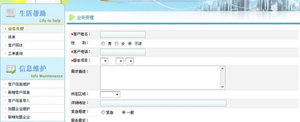 客服信息系統(tǒng)主要具有用業(yè)務(wù)查詢、投訴建議、業(yè)務(wù)受理、服務(wù)態(tài)度監(jiān)控、主動(dòng)外撥、電話回訪、統(tǒng)計(jì)報(bào)表等。