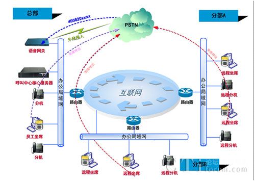 云翌I(lǐng)P呼叫中心具有強大而靈活的組網(wǎng)能力。