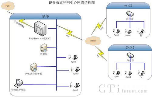 只要網(wǎng)絡互連的地方,就可設立座席代表。在易客通平臺上,遠程座席和本地座席沒有區(qū)別,建立集中式呼叫中心和分布式呼叫中心在系統(tǒng)造價上是一樣的,因為話音是在IP網(wǎng)上,省去長途通信費用。