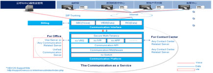 CCCS 的核心在亍CaaS(Communication as a Service) 平臺.nEXUS 采用SIP、HTTP、RIO、Open Source 等的國際標(biāo)準(zhǔn)技術(shù)構(gòu)建開放型平臺。并且通過Communication API 的公開,與其他通信解決方案易于對接,將來服務(wù)的應(yīng)用和擴(kuò)展方面具有很突出的優(yōu)勢。