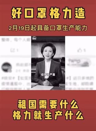 巨人網(wǎng)絡(luò)通訊聲明:本文標(biāo)題《格力生產(chǎn)口罩 董明珠:讓所有人都能買到口罩》,本文關(guān)鍵詞 格力,生產(chǎn),口罩,董明珠,;如發(fā)現(xiàn)本文內(nèi)容存在版權(quán)問題,煩請(qǐng)?zhí)峁┫嚓P(guān)信息告之我們,我們將及時(shí)溝通與處理。本站內(nèi)容系統(tǒng)采集于網(wǎng)絡(luò),涉及言論、版權(quán)與本站無關(guān)。