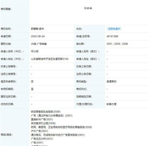 巨人網(wǎng)絡(luò)通訊聲明:本文標(biāo)題《“郭麒麟、奇林”商標(biāo)遭惡意搶注,德云社一方未回應(yīng),粉絲急壞了》,本文關(guān)鍵詞 郭麒麟,奇林,商標(biāo),遭,惡意,;如發(fā)現(xiàn)本文內(nèi)容存在版權(quán)問題,煩請?zhí)峁┫嚓P(guān)信息告之我們,我們將及時溝通與處理。本站內(nèi)容系統(tǒng)采集于網(wǎng)絡(luò),涉及言論、版權(quán)與本站無關(guān)。