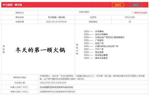 巨人網(wǎng)絡(luò)通訊聲明:本文標(biāo)題《繼“秋天的第一杯奶茶”后,“冬天的第一頓火鍋”也被申請成商標(biāo)》,本文關(guān)鍵詞 繼,秋天,的,第,一杯,奶茶,;如發(fā)現(xiàn)本文內(nèi)容存在版權(quán)問題,煩請?zhí)峁┫嚓P(guān)信息告之我們,我們將及時溝通與處理。本站內(nèi)容系統(tǒng)采集于網(wǎng)絡(luò),涉及言論、版權(quán)與本站無關(guān)。