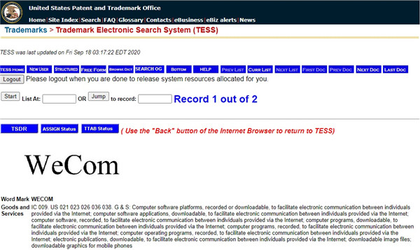 巨人網(wǎng)絡(luò)通訊聲明:本文標(biāo)題《騰訊在美國注冊 WeCom 商標(biāo),對此騰訊拒絕置評》,本文關(guān)鍵詞 騰訊,在,美國,注冊,WeCom,;如發(fā)現(xiàn)本文內(nèi)容存在版權(quán)問題,煩請?zhí)峁┫嚓P(guān)信息告之我們,我們將及時溝通與處理。本站內(nèi)容系統(tǒng)采集于網(wǎng)絡(luò),涉及言論、版權(quán)與本站無關(guān)。