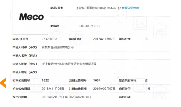 在中國(guó)商標(biāo)網(wǎng)查詢了香飄飄近兩年所申請(qǐng)的商標(biāo)后,會(huì)發(fā)現(xiàn),它的步伐快速又急促。從液體奶茶、果汁茶,再到冷泡茶、咖啡、燒仙草,甚至還有輕食,產(chǎn)品版圖快速多樣化布局。2017年11月,香飄飄申請(qǐng)注冊(cè)了“Meco”商標(biāo),準(zhǔn)備進(jìn)軍瓶裝茶飲料市場(chǎng)。Meco果汁茶的包裝、口感與傳統(tǒng)即飲茶相比,顯得更加顯眼、清爽,在廣告宣傳上,Meco果汁茶借力粉絲經(jīng)濟(jì),選擇新生代演員鄧倫作為代言人,也和《極限挑戰(zhàn)》《這就是街舞》等熱門綜藝合作,和王者榮耀、QQ音樂等年輕人熟知的IP合作,不斷在年輕人之間刷品牌的存在感。