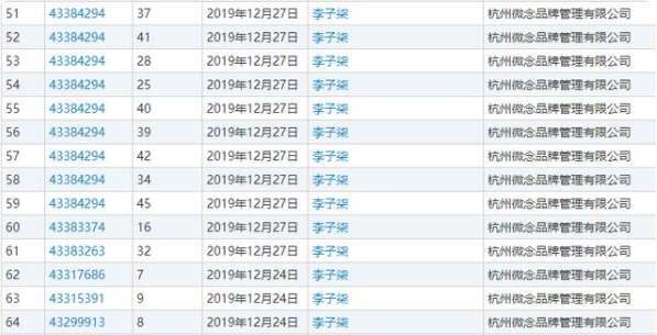 商標糾紛則表現(xiàn)為,杭州微念在李子柒爆火之后,注冊了96項有關“李子柒”的商標,掌握了“李子柒”商標的歸屬權。
