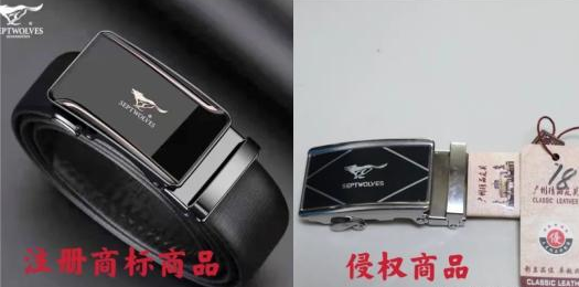 侵權(quán)商品腰帶扣上狼的圖案 ,整體上與注冊(cè)商標(biāo)相似,侵犯了“七匹狼”注冊(cè)商標(biāo)權(quán)專用權(quán)。