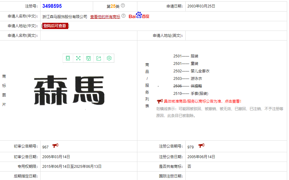 那么,這個“森馬”的商標權注冊到底是什么一個情況呢?