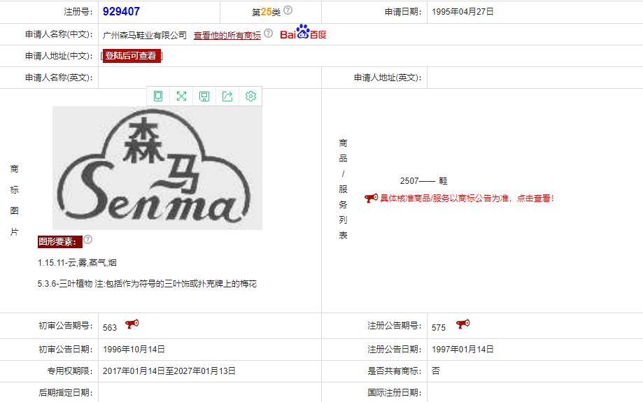 結合各方消息來看,“森馬”這一商標名稱最早注冊申請日為1995年4月27日,初審公告日為1996年10月14日,注冊公告日為1997年1月14日,注冊成功后,該商標發(fā)生過兩次轉讓。