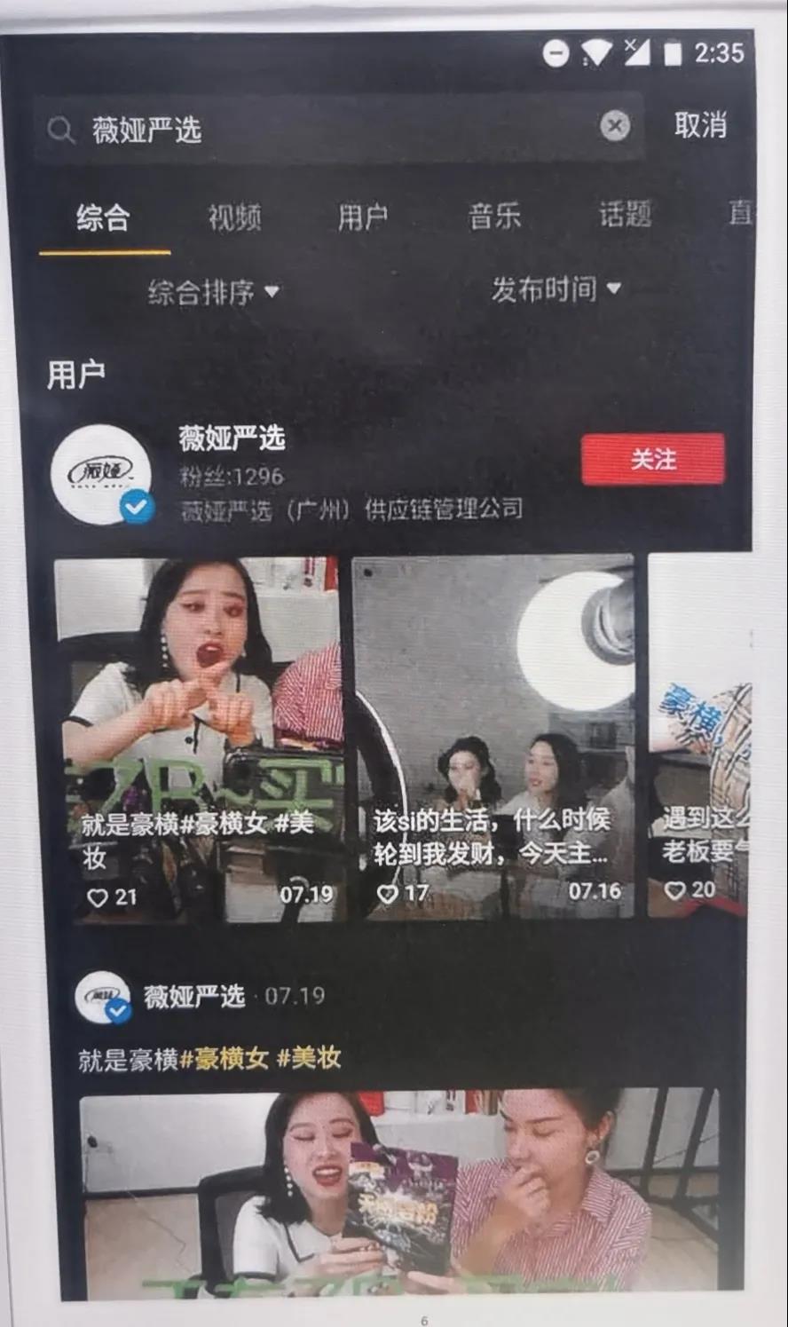 ?薇婭嚴選公司在其經(jīng)營的抖音“薇婭嚴選”賬戶中,設(shè)置的昵稱、頭像及個人簡介包含“薇婭”字樣,該行為屬于在生產(chǎn)經(jīng)營過程中大量、突出使用“薇婭”或其企業(yè)字號的情形。被告薇婭嚴選公司通過抖音認證的方式,將企業(yè)字號顯示于抖音“薇婭嚴選”賬戶中,誤導相關(guān)公眾以為被告薇婭嚴選公司與抖音“薇婭嚴選”賬戶具有對應(yīng)關(guān)系,屬于對企業(yè)字號在互聯(lián)網(wǎng)平臺上的使用。