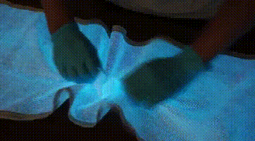 團(tuán)隊(duì)在導(dǎo)電纖維緯線的力學(xué)性能方面也下足了工夫,通過熔融擠出方法制備了一種高彈性的透明高分子導(dǎo)電纖維。彭慧勝介紹,在兩根纖維發(fā)生相對(duì)滑移、旋轉(zhuǎn)、彎曲的情況下,交織發(fā)光點(diǎn)亮度變動(dòng)范圍仍控制在5%以內(nèi),顯示織物在對(duì)折、拉伸、按壓循環(huán)變形條件下亦能保持亮度穩(wěn)定,可耐受上百次的洗衣機(jī)洗滌。