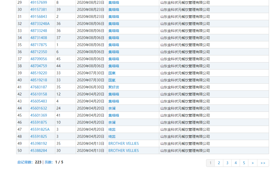 申請注冊“拉面哥”商標的申請人中,有一家名為山東金科狀元的餐飲管理公司。