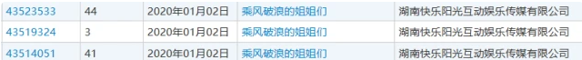 隨著節(jié)目的火爆也為“乘風(fēng)破浪的姐姐”這一商標(biāo)帶來了巨大的價(jià)值。而節(jié)目組當(dāng)初并沒有想到反響會(huì)如此巨大,只注冊了第3、41、44類節(jié)目相關(guān)商標(biāo)。