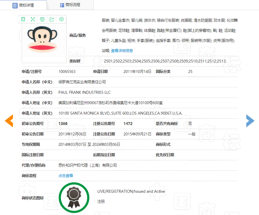 美國服裝品牌“Paul Frank”,以其“大嘴猴”的卡通形象廣為人知。近日,在國外,瑞士品牌管理公司Futurity Brands 宣布收購美國流行文化和生活方式品牌 Paul Frank 的全球知識產(chǎn)權,具體的收購信息尚未披露。在國內(nèi),長沙市岳麓區(qū)人民法院開庭審理了這樣一起商標侵權糾紛,寧鄉(xiāng)市一超市因出售未經(jīng)授權的“大嘴猴”羊毛襪,被保羅弗蘭克實業(yè)有限公司索賠5萬元。法院認為,宏聯(lián)公司經(jīng)授權,有權對侵害涉案商標權的行為提起訴訟。本案中,羊毛襪上印制的猴子圖像,經(jīng)比對與保羅公司注冊的商標構成相同商標,故被控侵權商品侵犯了宏聯(lián)公司享有的注冊商標專用權。